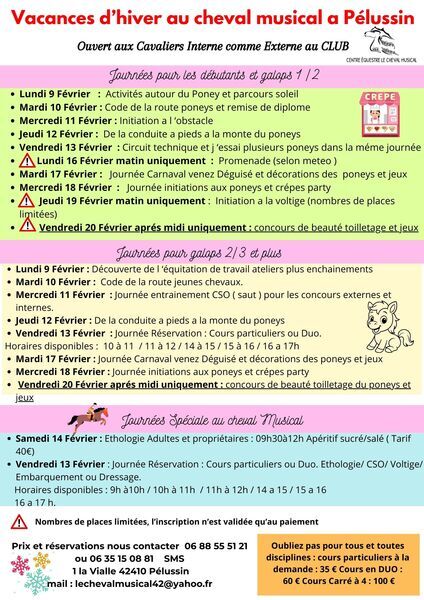 Stage vacances de février 2026